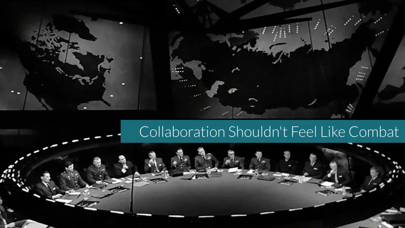 Cognitive psychology tells us metaphors are not neutral. And so when we frame collaboration in the language of combat, we prime people to approach it with the mindset of combat.