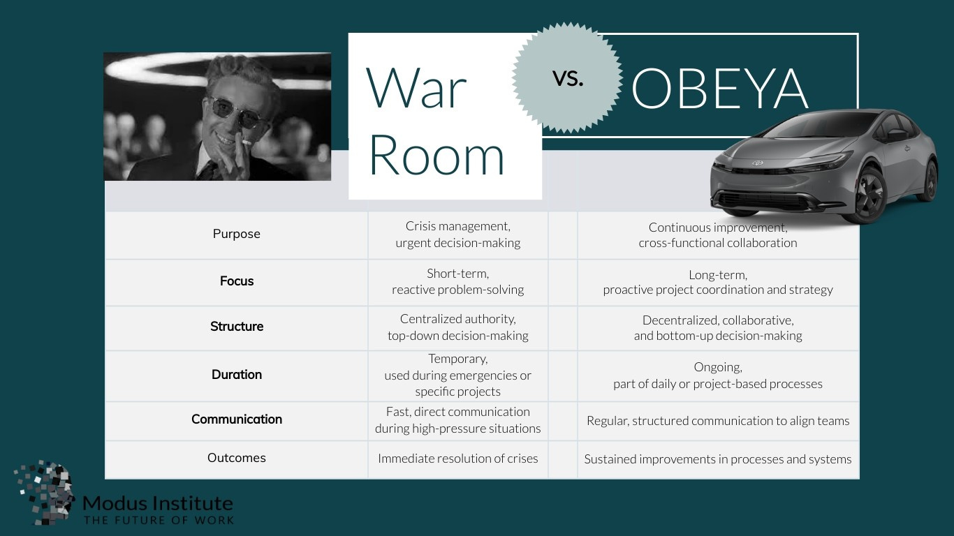 As this comparison reveals, the war room and Obeya are not merely different tools or environments, they reflect fundamentally different mindsets.